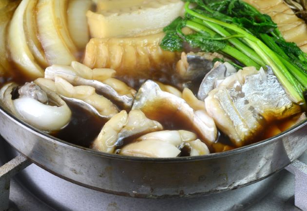 タチウオの魚すき 島根県では「へか焼き」、「煮食い」、長崎県では「いり焼き」などという。要するに魚のすき焼きである。