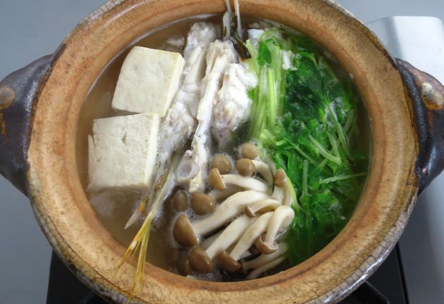 コケノコギリの鍋 刺身であまった部分や中骨を使って鍋にする。中骨などは食べやすい大きさに切る。湯通しして冷水に落として残った鱗やぬめりを流す。水分をよくきっておく。昆布だしに酒・塩で味つけした中で煮ながら食べる。少し淡泊なのでだしを使ってもいい。非常に上品な中に味がある。