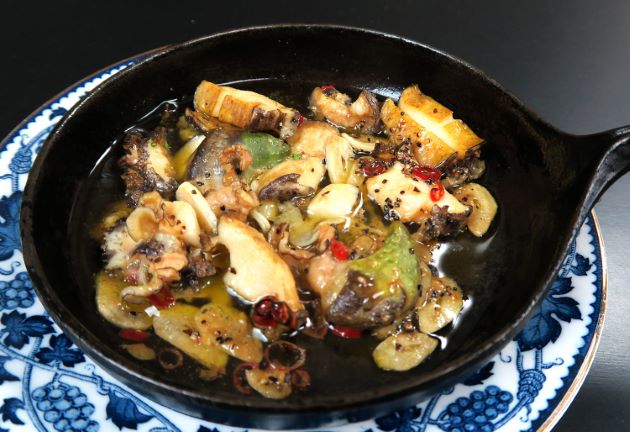 エゾアワビのアヒージョ エゾアワビは水洗いして、貝殻から外し、塩をまぶして少ししめる。適当に切り、たっぷりのにんにく、オリーブオイルで煮る。油が泡立ち、にんにくの香りがしてきたら出来上がりである。身、つのわたを食べ、うま味のある油をパンに浸して食べるといい。クリックで閉じます![]()