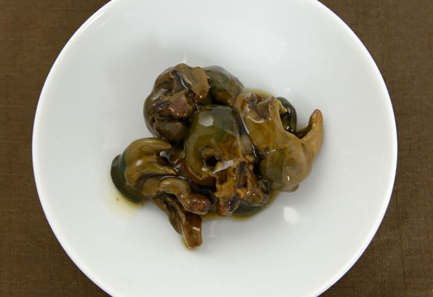 肝煮 韓国産エゾアワビの肝を煮たもの。ワインを使っている。『信玄食品(山梨県甲州市塩山)』釣り情報