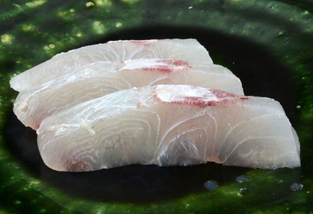 きれいな白身で血合いは弱い。熱を通してもあまり強く締まらない。