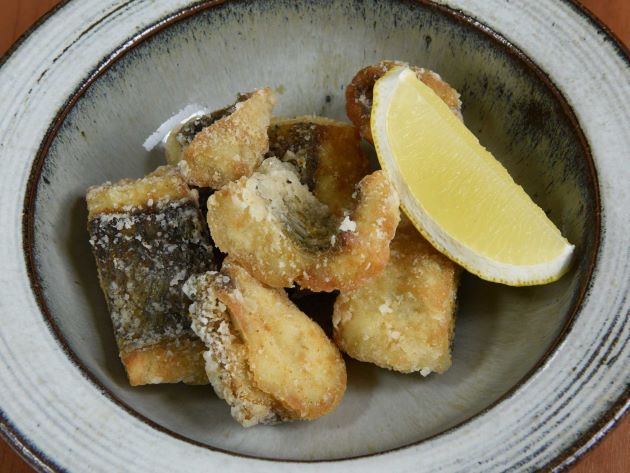ツバメウオの唐揚げ 小振りは丸ごとバター焼きにしてもいいし、唐揚げにしてもいい。ここでは適当に切って唐揚げにしてみた。側へんしている分、揚げやすいのもいい。