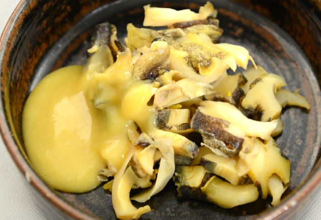 唾液腺にテトラミンがある、蓋のついた足の部分縦に割り、根元にあるクリーム色の柔らかいものを除去してから食す。食べ方・料理法・作り方 (基本はオススメ順掲載です)